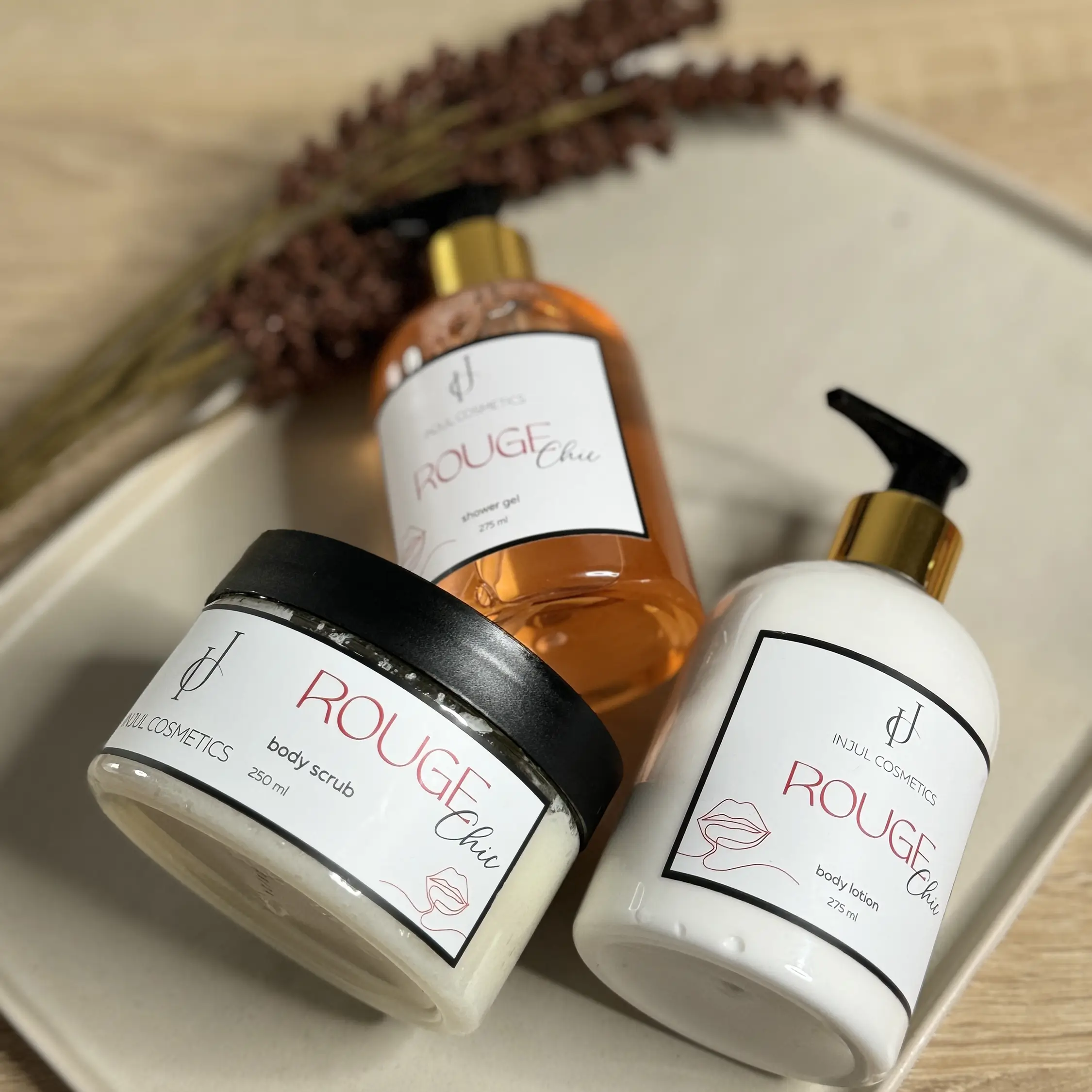 Набір "Rouge Chic" — це втілення розкішного догляду за шкірою, з вишуканим нішевим ароматом Baccarat Rouge 540. Лосьйон для тіла, скраб та гель для душу створені, щоб огорнути вашу шкіру ніжністю та глибоким зволоженням.